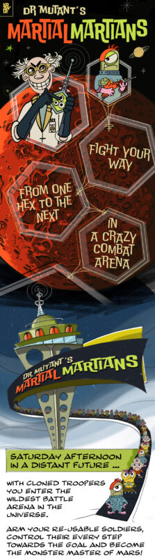 Go to https://www.kickstarter.com/projects/kurzweiler/dr-mutants-martial-martians/ and click “Notify me”. You’re not committing to anything, but you’ll tickle the Kickstarter algorithm — which would help us enormously. Thanks in advance!